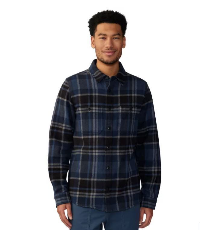 Introducing the 2024 Men's Plusher Long Sleeve Shirt by Mountain Hardwear. This technical shirt is expertly crafted to provide both warmth and sustainability, making it an essential piece for any winter wardrobe. Constructed from 100% organic cotton, the Plusher™ Long Sleeve Shirt ensures you stay comfortable and warm during your outdoor adventures, whether you're traveling or camping.