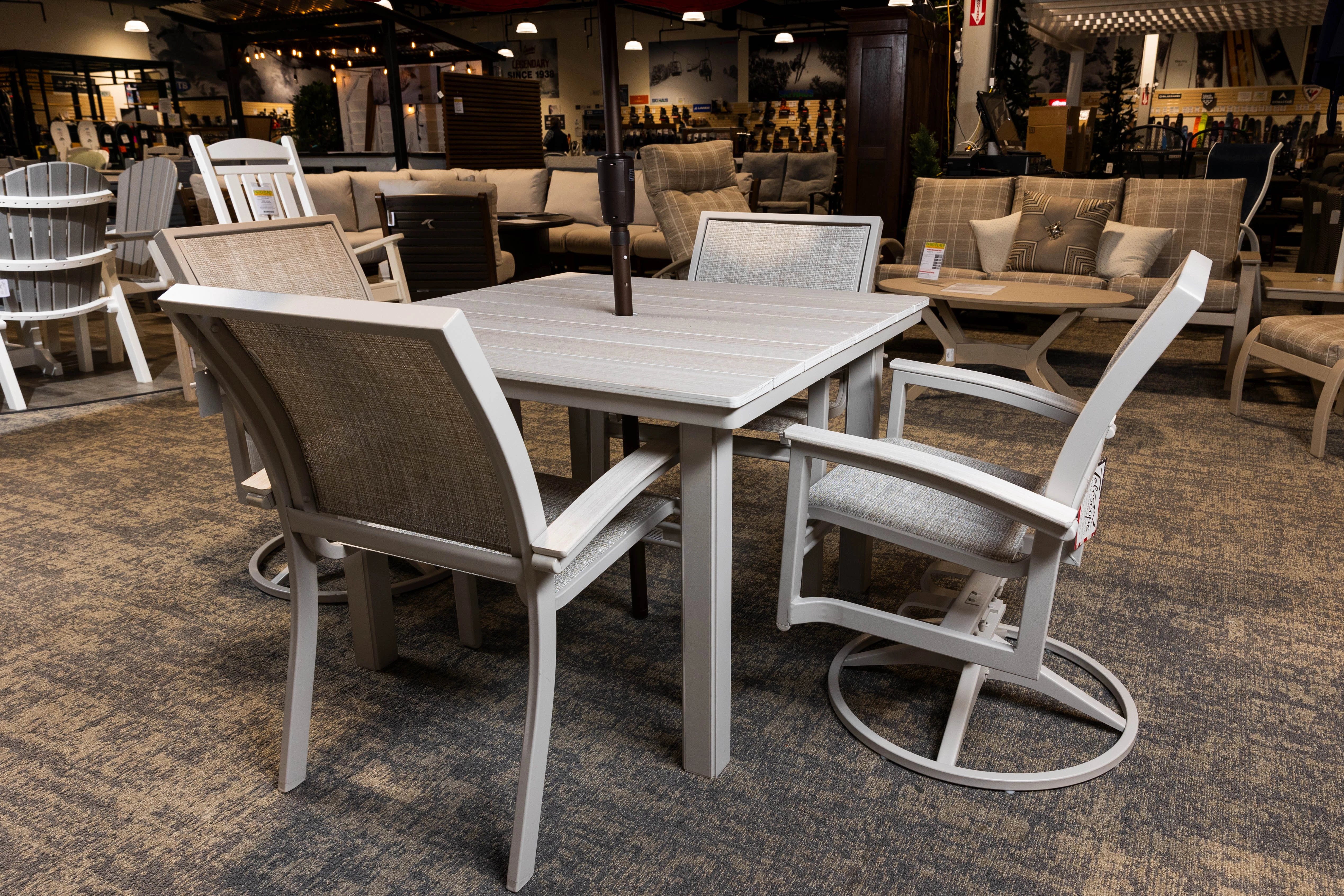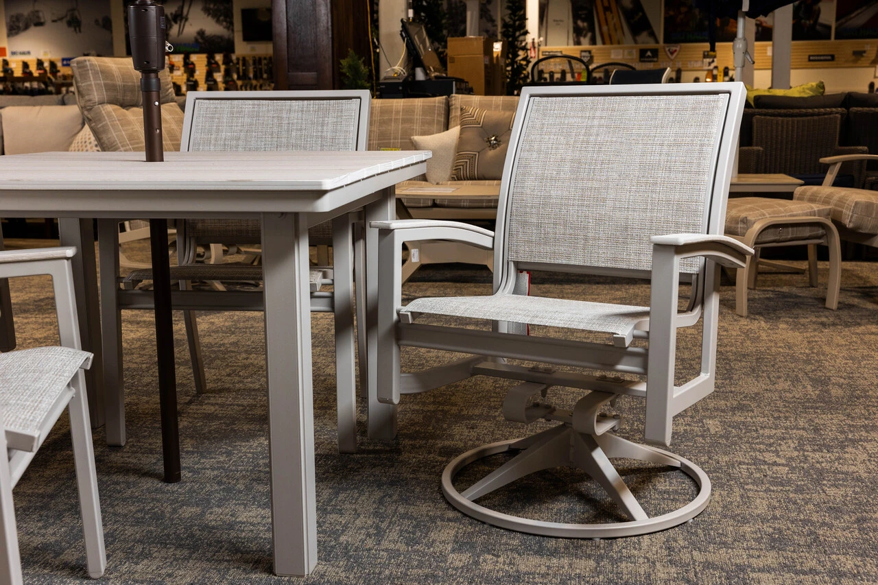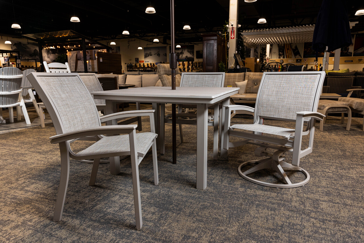 Set includes a 42" Square Table w/4 Stacking Cafe Chairs. Upgrade to swivel chairs for additional cost