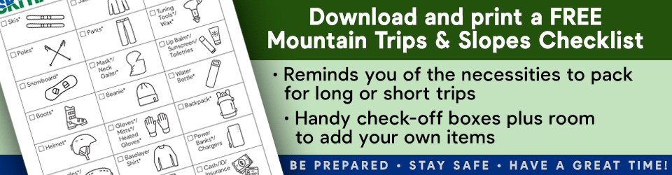 Planning a weekend getaway or a week-long ski vacation? Don’t forget to grab our Mountain Trip Checklist—a downloadable guide to make sure you pack everything you need. From goggles to granola bars, we’ve thought of it all so you don’t have to. Mtn Trip Checklist