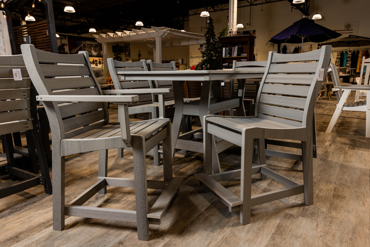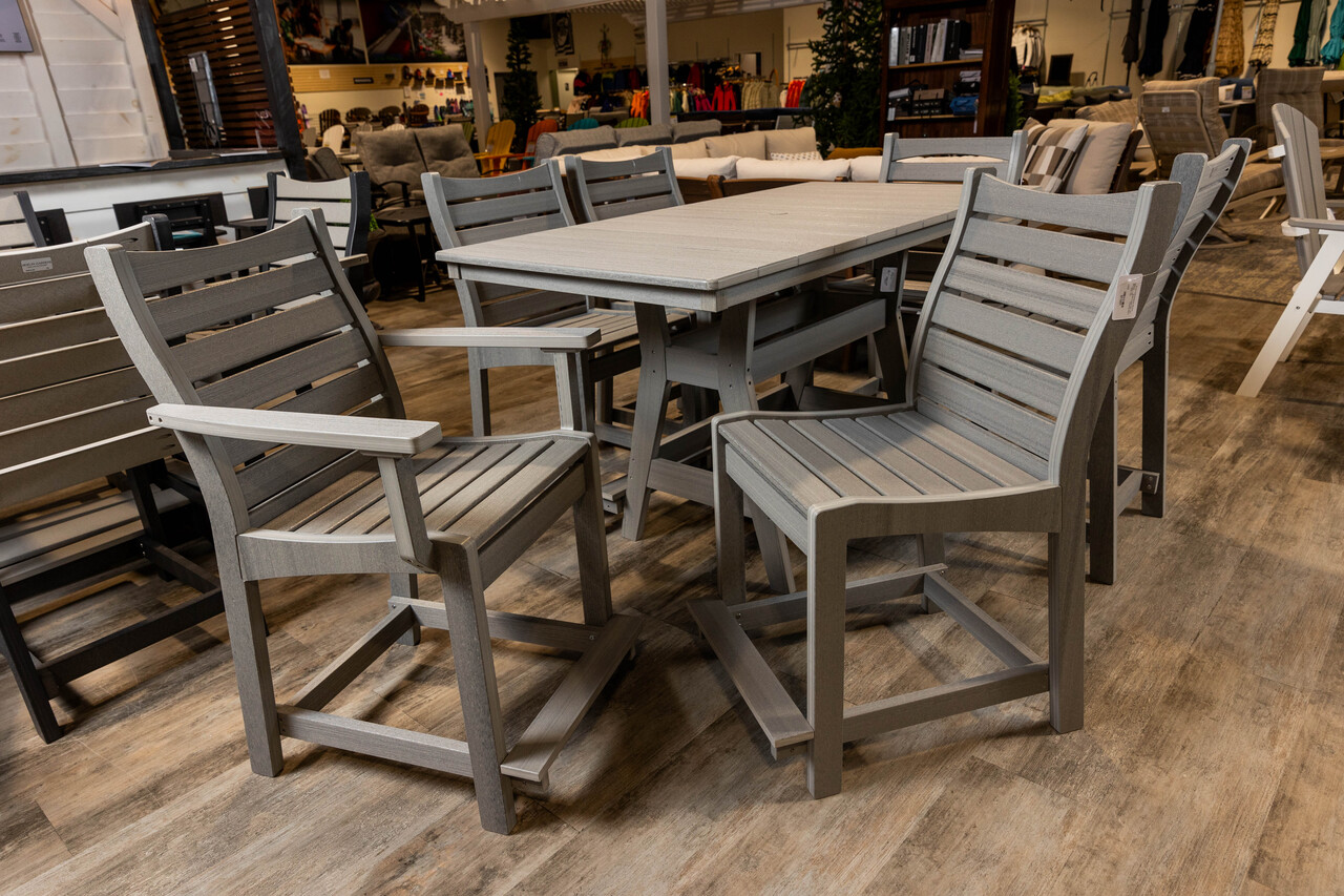 Introducing the Bristol 7 Piece Counter Set in Driftwood Gray from Berlin Gardens. This elegant patio furniture set is designed with the perfect balance of style and functionality, making it a must-have for any outdoor living space. The set includes a counter height table measuring 33x66 inches, accompanied by six Bristol Counter Chairs. Each piece is meticulously crafted, showcasing the superior quality and craftsmanship that Berlin Gardens is known for. The Driftwood Gray finish gives the set a timeless appeal, ensuring it will enhance the aesthetic of your patio, deck, or garden. Whether you're hosting a dinner party or simply enjoying a quiet evening outdoors, the Bristol 7 Piece Counter Set offers the perfect setting. Experience the exceptional durability and comfort of Berlin Gardens' patio furniture. Make the Bristol 7 Piece Counter Set in Driftwood Gray the centerpiece of your outdoor space today.