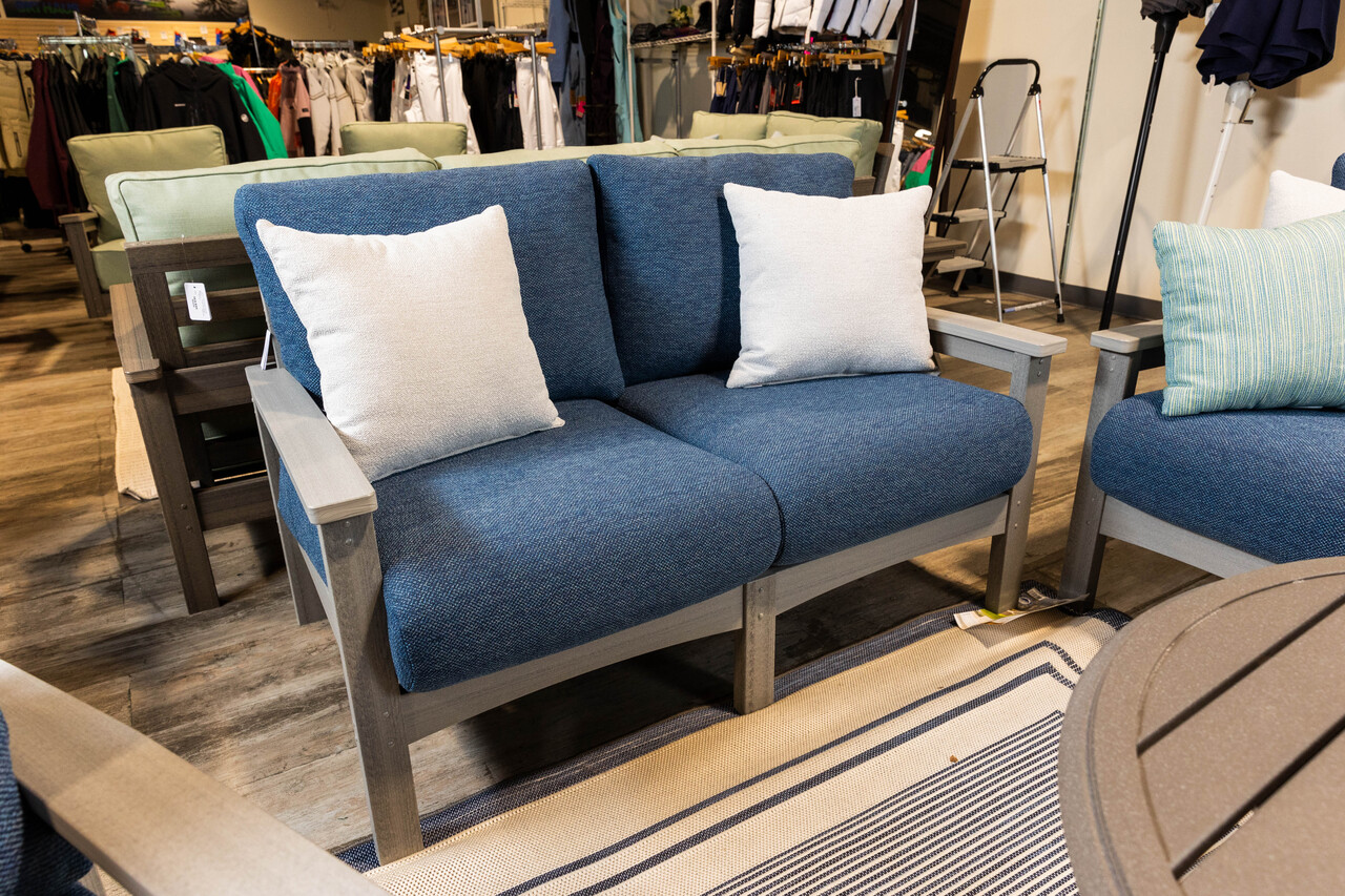 Camden Loveseat - Driftwood Gray with Bluepoint Azul Cushions